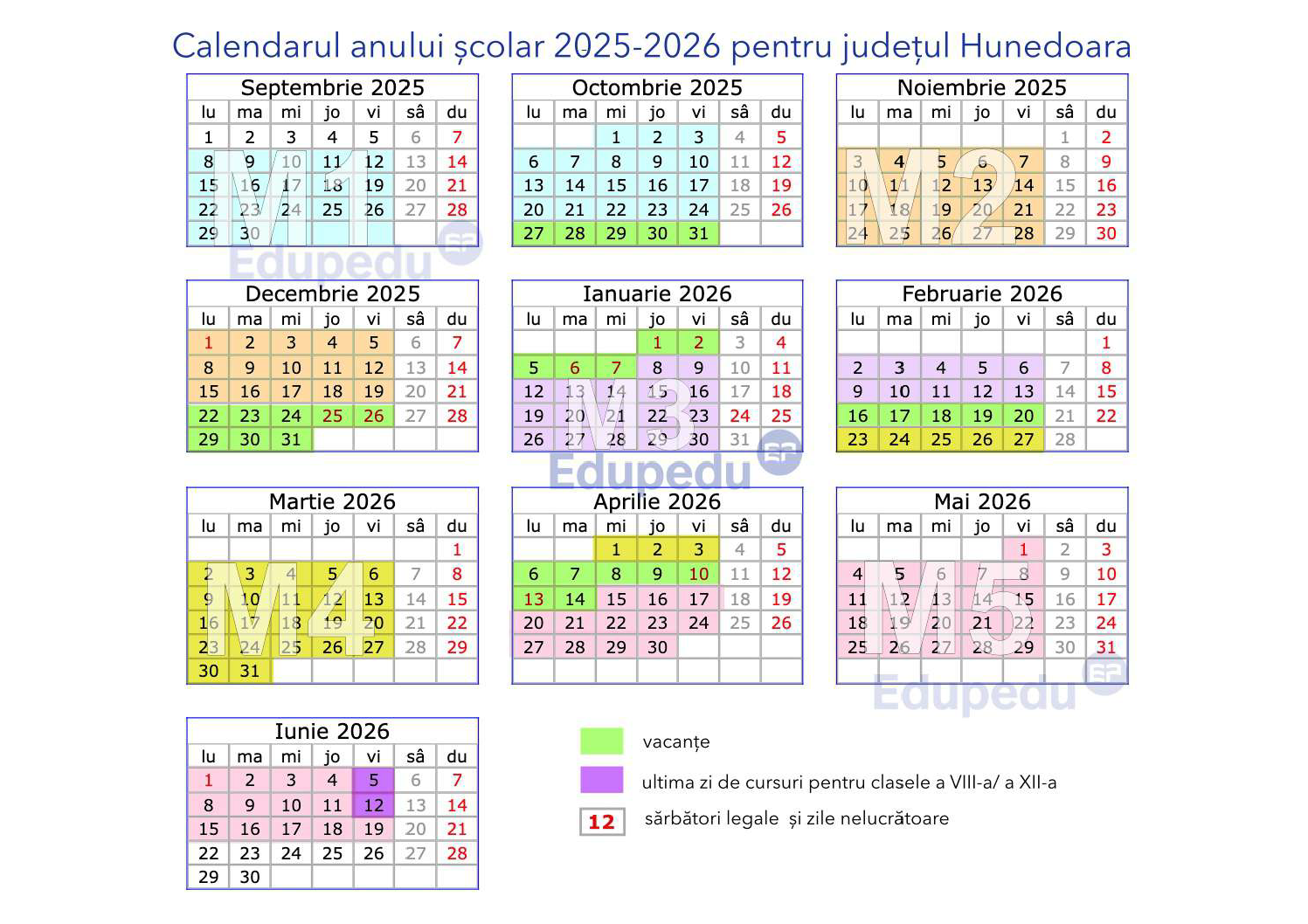 CALENDARUL PENTRU ANUL SCOLAR 2025-2026